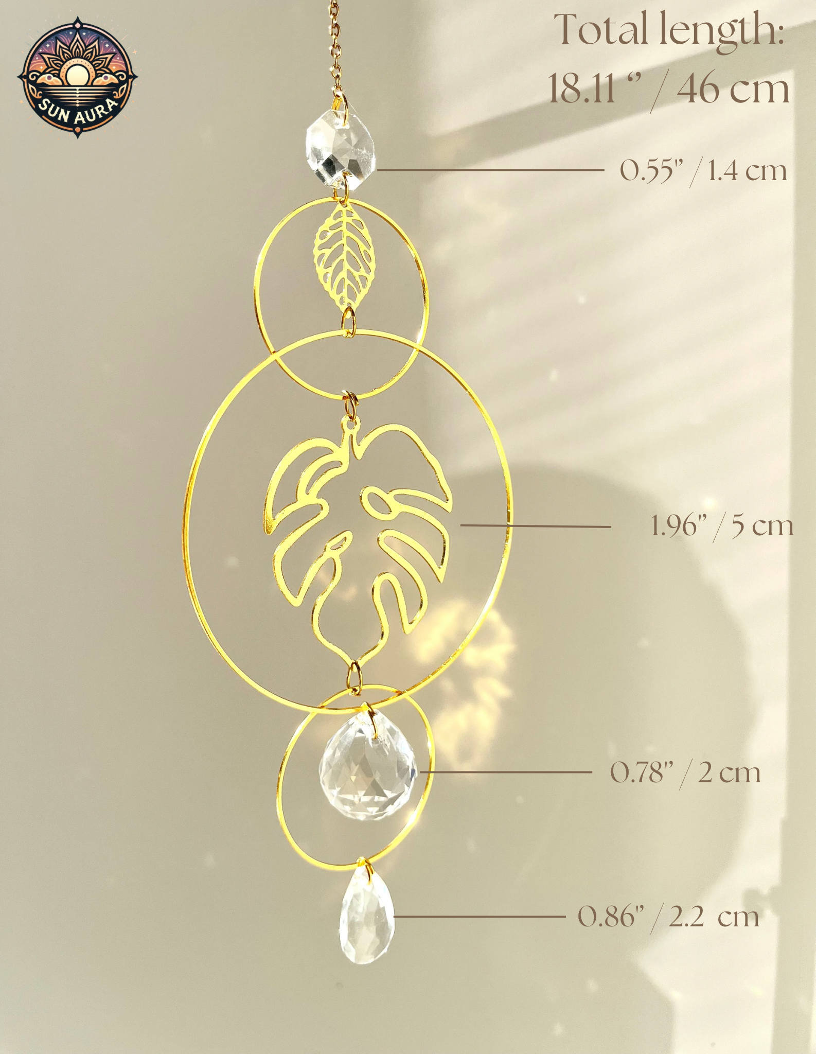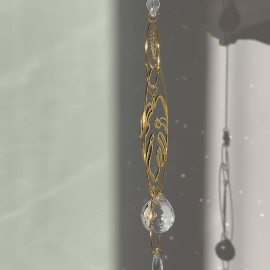 Bring tropical elegance and radiant energy into your space with this handcrafted monstera crystal sun catcher. Featuring a lush monstera leaf design paired with shimmering crystals, it casts dazzling rainbows across your room while channeling calming vibes.