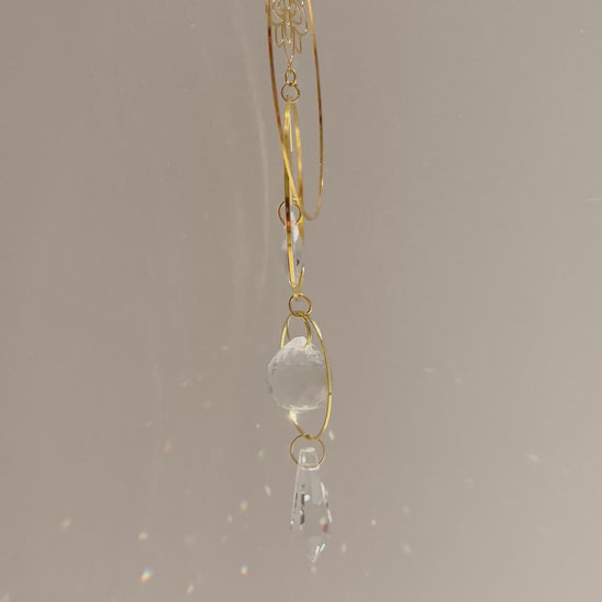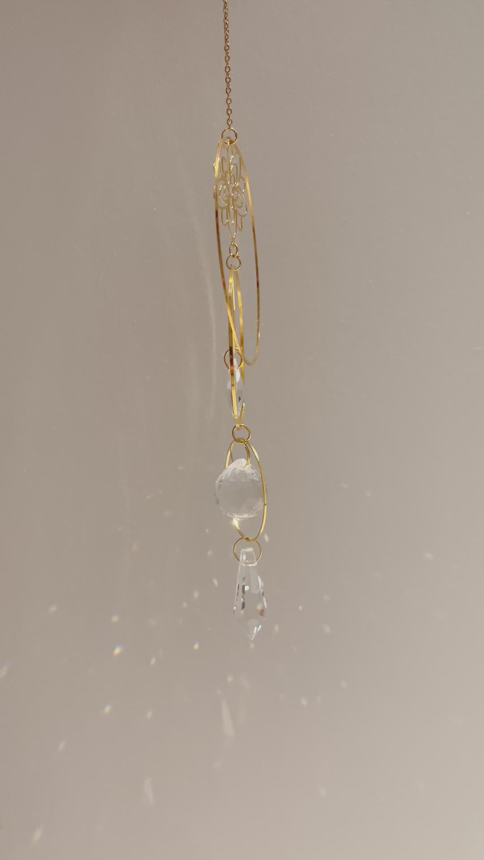 Celestial Loop captures the warmth of sunlight in motion — delicate crystals that dance with every beam, filling your space with peace, beauty, and gentle radiance. Handcrafted to bring calm and luminous energy wherever it hangs.