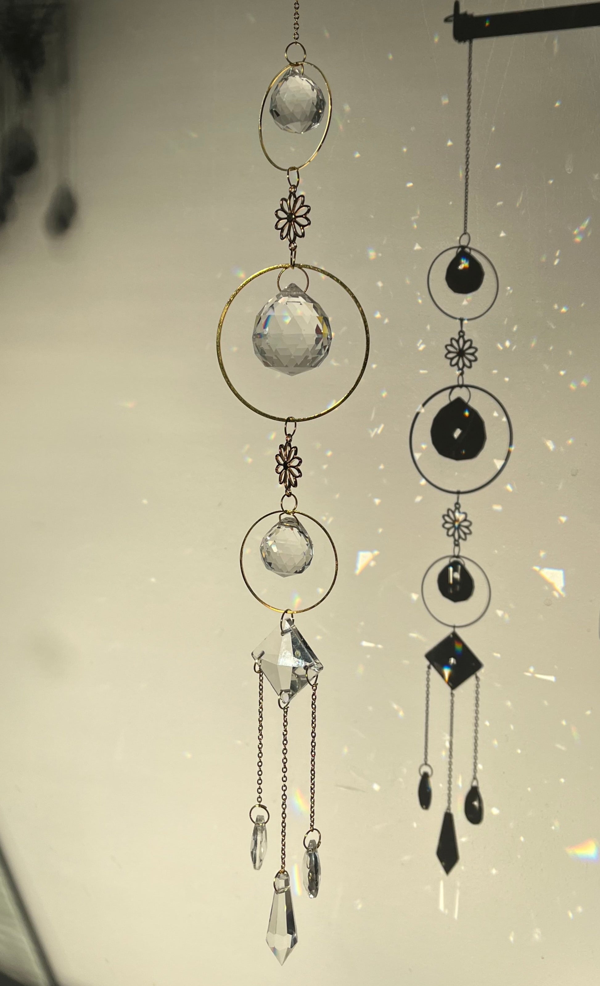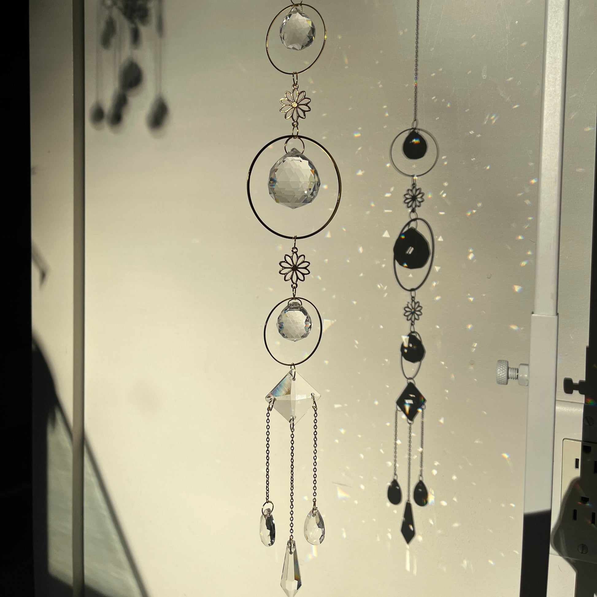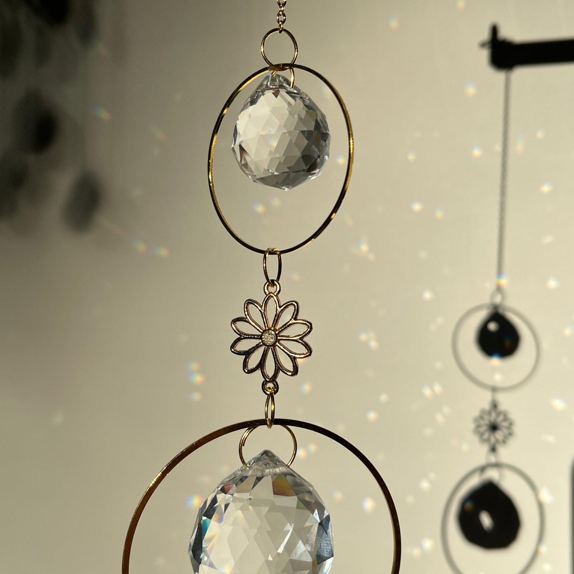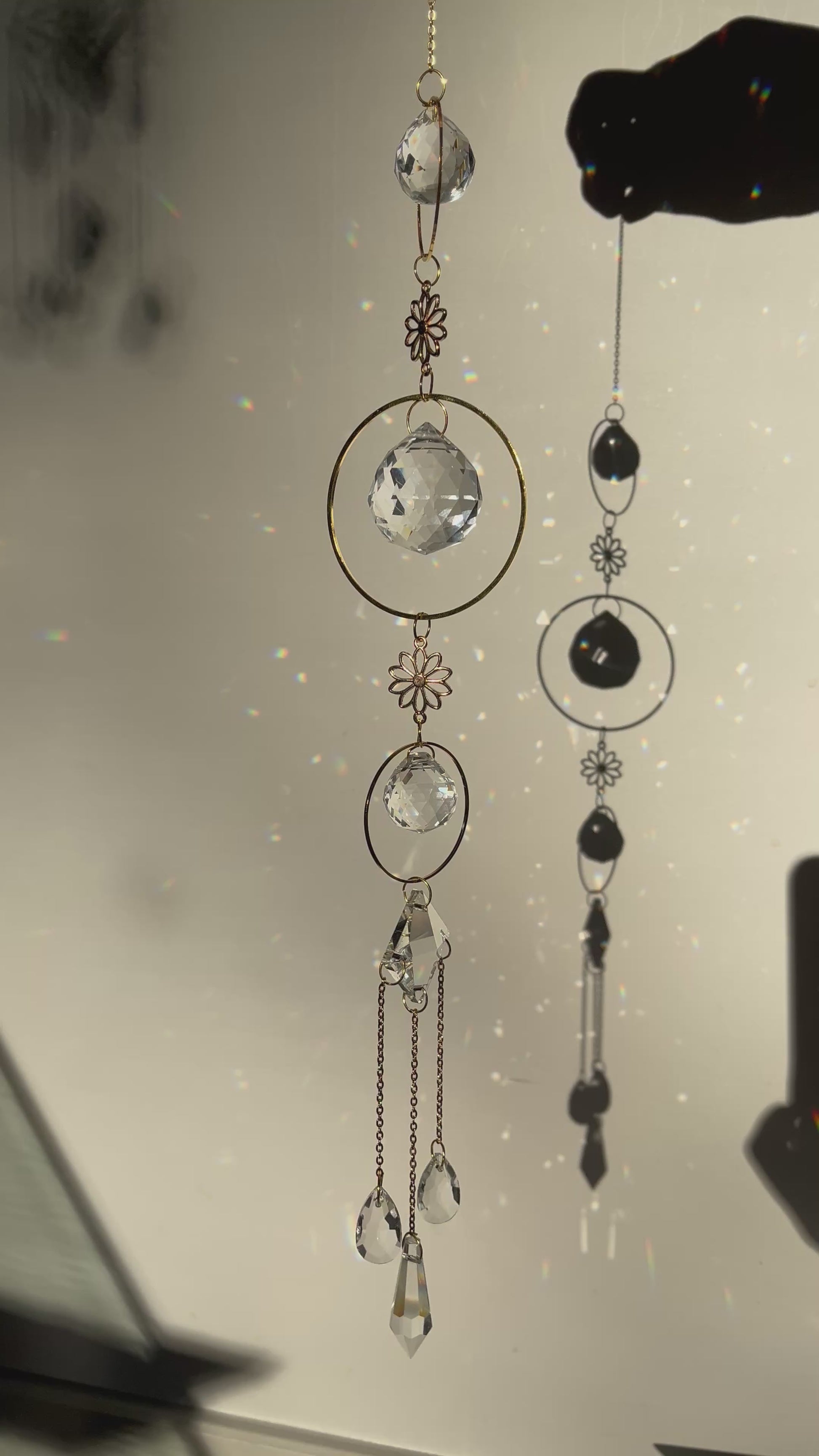 🌸Designed with shimmering glass crystals and golden accents, it transforms sunlight into a cascade of rainbows that dance across your walls. This suncatcher will highlight your inside with its 7 suncatcher pieces.